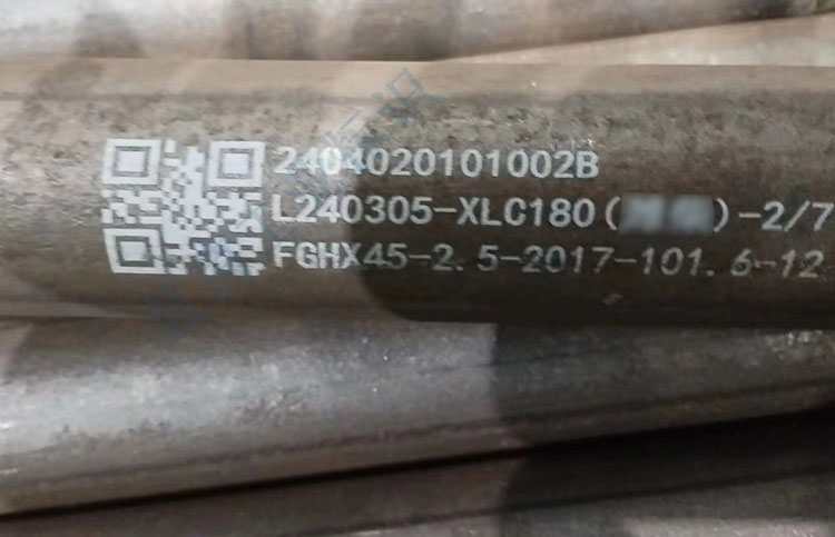 在線式自動UV噴碼機(jī)在鋼管上噴白色二維碼信息 案例