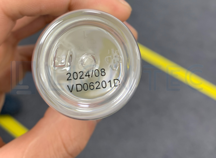 化妝品小樣塑料瓶生產(chǎn)日期批號(hào),瓶身、瓶底UV噴碼機(jī)打樣效果圖