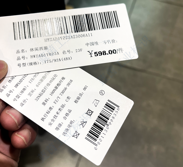 衣服白卡紙吊牌產(chǎn)品信息UV噴碼機(jī)噴印效果