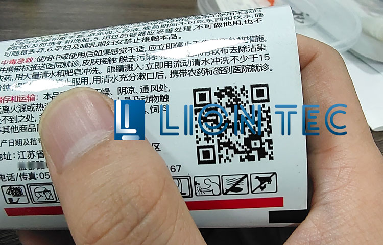 UV噴碼機(jī)的壓電式噴墨與LED光固化技術(shù)很適合在這種?特殊的薄膜材料上進(jìn)行高附著、高清晰的打印,以上是我們?yōu)榭蛻羲蜆拥男Ч麍D。小尺寸的二維碼在UV噴碼機(jī)的打印下同樣可以清晰、易識(shí)別。