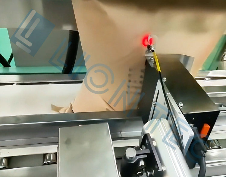 全自動UV噴碼機在牛皮紙上噴印多行產(chǎn)品信息、批號、生產(chǎn)日期