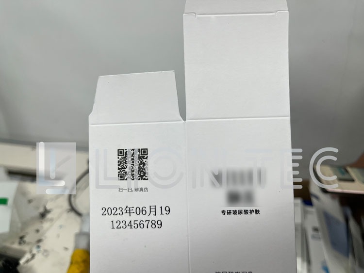 化妝品面膜乳液紙盒包裝生產(chǎn)日期UV噴碼機(jī)打樣效果